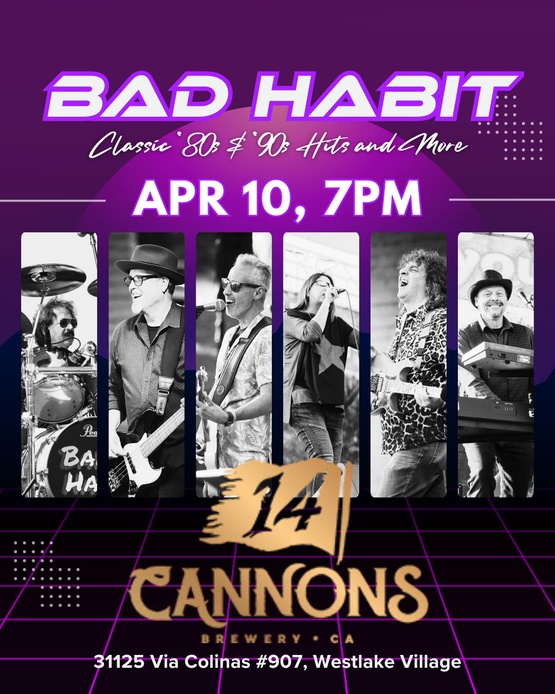 Ventura County's favorite cover band delivers an unforgettable, HIGH-ENERGY, good-time PARTY EXPERIENCE at every venue and event they play! With female and male lead vocals, this versatile group brings to life the best of classic '80s and '90s pop/rock and dance hits. Get ready to sing and dance the night away to chart-topping hits from each era. Bad Habit provides the ultimate entertainment experience for your private party, corporate event, community event, and other special occasions. Are you ready to have a good time with Bad Habit?